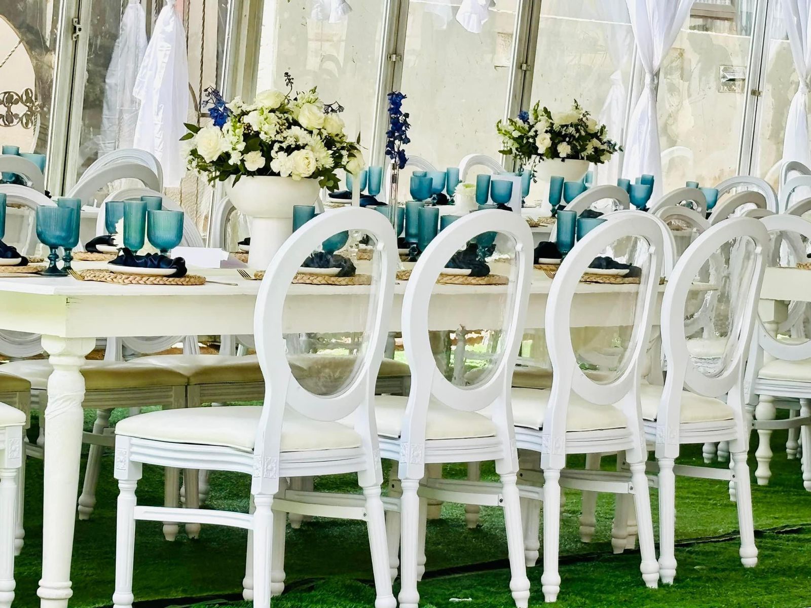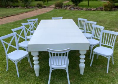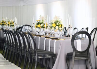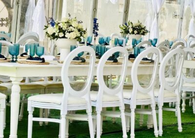 Quality chairs, tables, stretch tents, and white jumping castles to bring your event together effortlessly.